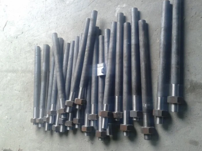 - Анкер-шпилька (без головки). С резьбой с двух сторон. Одна сторона закрепляется в основании (химически или цементным раствором), на вторую накручивается гайка с шайбой.