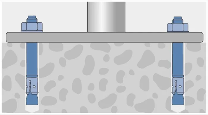 | Распорный (клиновой, забивной) | Классика жанра. Вы забиваете его в отверстие, а потом, закручивая гайку, вытягиваете конусную часть внутрь гильзы. Та распирается, вгрызаясь в бетон. Механическое, простое, очень надёжное крепление. | Для тяжёлых статических нагрузок: крепление колонн, станков, опор, металлоконструкций к монолитному бетону. Работает на срез и вырыв. |