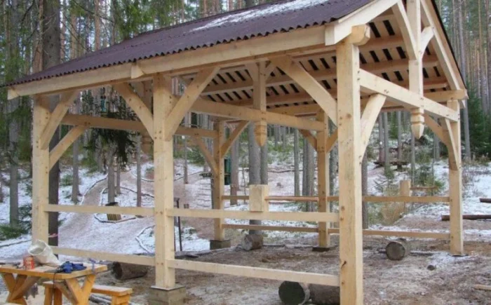 - Вес беседки. Сложите вес всех материалов: каркаса, кровли, обшивки, пола. Не забудьте про примерный вес людей и мебели внутри – это полезная нагрузка.