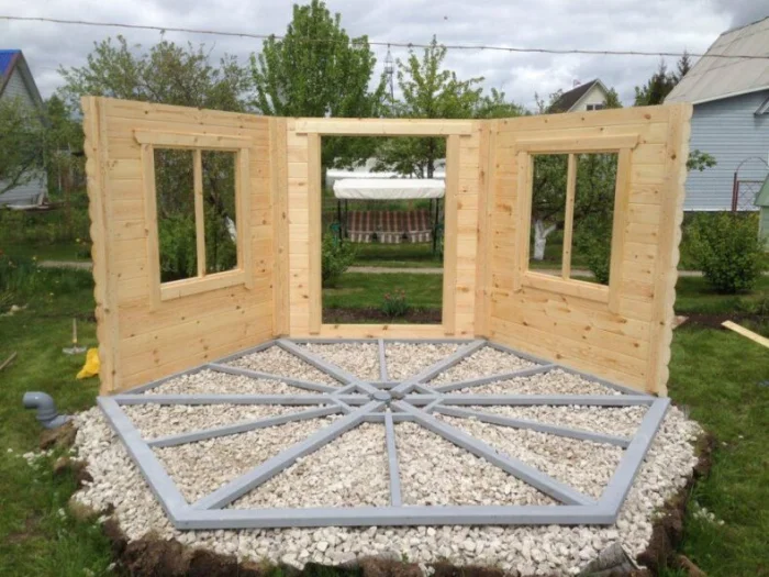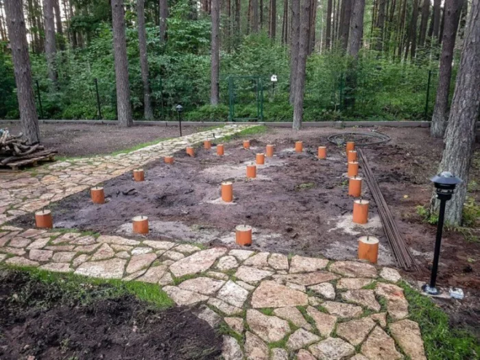 | Столбчатый | Отдельные опоры (столбы) в ключевых точках, обычно по углам и в середине длинных сторон. | Бюджетный и быстрый вариант для легких деревянных или каркасных беседок. Критически важно выставить все столбы в один уровень. Крепить обвязку к столбам нужно на анкеры. |