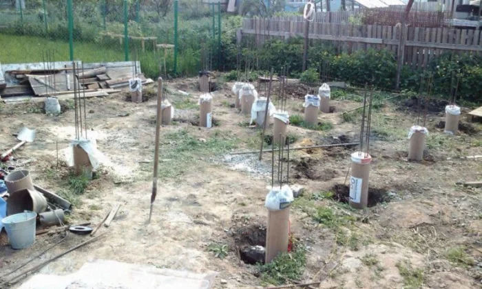 Копаем строго по разметке. Для ленты – траншея. Для столбов – шурфы (ямы). Глубина зависит от типа грунта и глубины промерзания. Обычно для средней полосы это 70-100 см. Ширина ленты или сторона ямы должна быть на 10-20 см шире будущего фундамента для удобства монтажа опалубки.