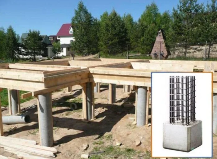 Для столбчатого фундамента каркас проще – обычно 3-4 вертикальных прута, связанных хомутами.