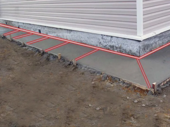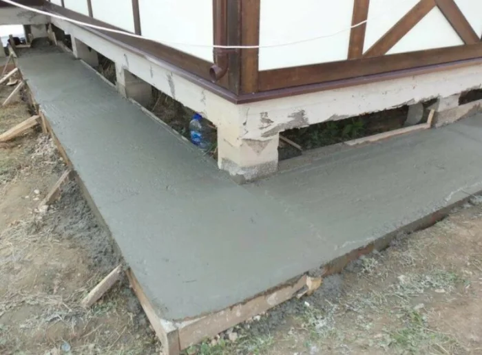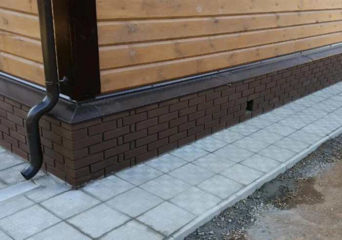 Здесь цоколь часто очень низкий. Отлив монтируется почти вровень с отмосткой. Главное — обеспечить отвод воды от самой плиты, чтобы она не подтапливалась. Отлив работает в тандеме с системой дренажа и ливневки.