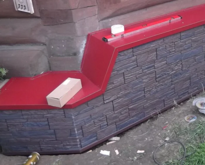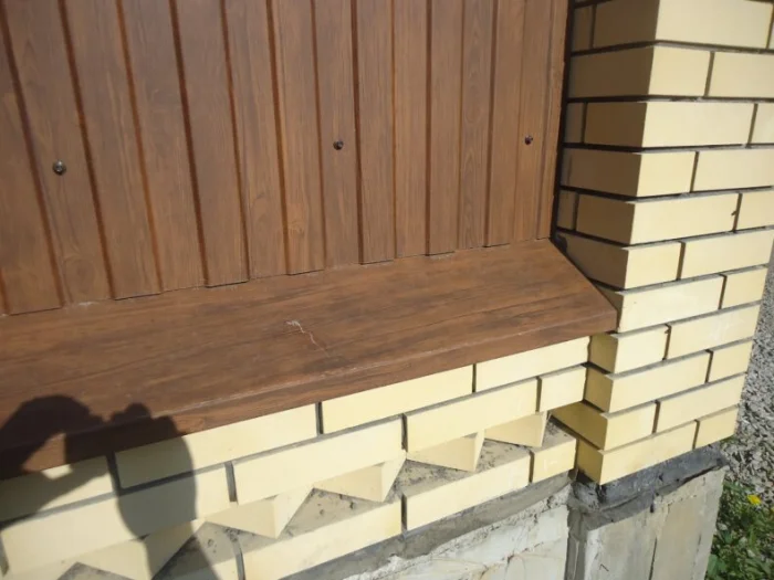 | 1 | Укрепите конструкцию забирки (фальш-цоколя) в зоне крепления отлива. | Забирка из тонкого сайдинга может не выдержать. Добавьте за обшивкой деревянный брус или металлический профиль. |