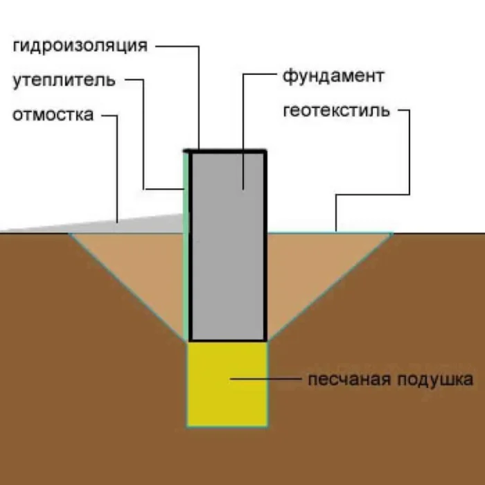 Чем слабее и пучинистее грунт (глина, суглинок), тем мощнее должна быть подушка. На песках можно обойтись 20-30 см. На глинах — уже 40-60 см и более. Всегда нужно дойти до устойчивого слоя грунта.