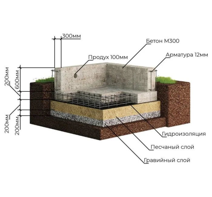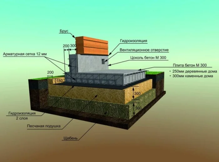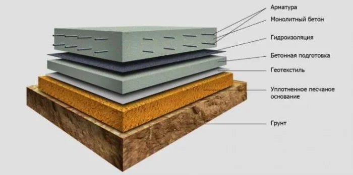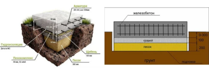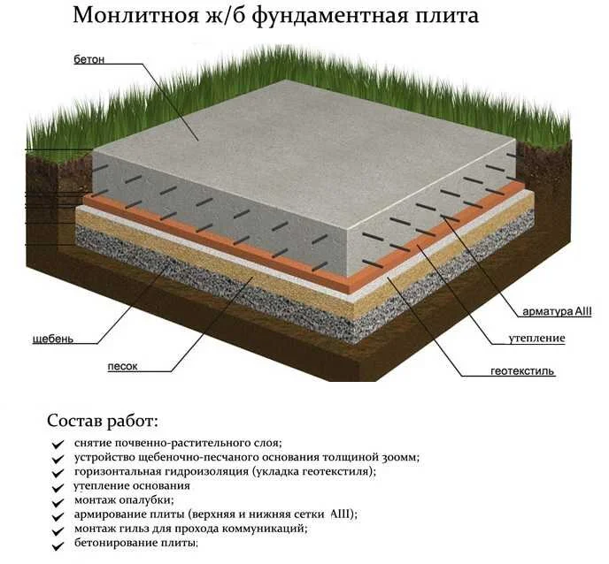 Это не полноценный фундамент, а бетонная подготовка (В7.5). Ее заливают тонким слоем (5-10 см) поверх утрамбованного щебня. Зачем? Она дает идеально ровную и прочную поверхность для укладки гидроизоляции и монтажа арматурного каркаса. Особенно актуальна для плитных фундаментов и при высоких грунтовых водах.