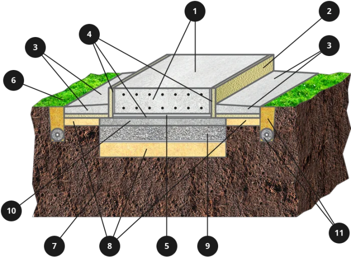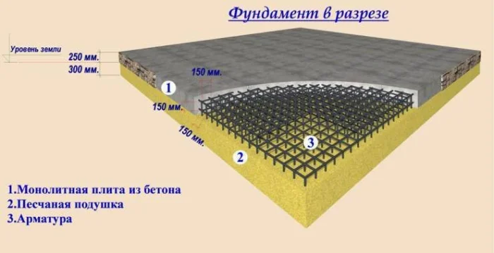 - Монолитная плита. Проще, чем УШП, но принцип тот же: ровное, дренирующее основание под всей площадью дома.
