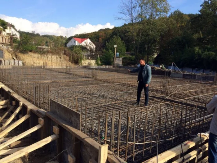 Выставляем опалубку по периметру будущего фундамента. Затем — вязка арматурного каркаса. Каркас должен быть приподнят над поверхностью подушки/гидроизоляции на специальных пластиковых фиксаторах, чтобы создать защитный слой бетона.