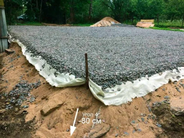 Часто подушку начинают именно со щебня, особенно если грунт влажный. Он создает жесткий, дренирующий слой.