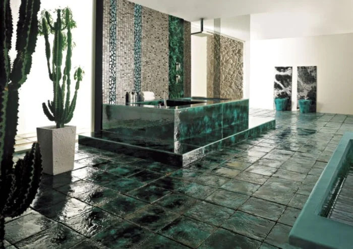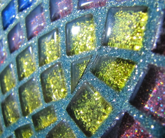 - Эстетика. С эпоксидной затиркой мозаика играет по-новому: швы становятся частью декора, усиливая глубину и блеск.