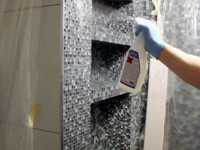 Средство типа Litokol Gel — ваш лучший друг в финале. Для глянцевой плитки его разводят в воде, для матовой можно использовать концентрат. Нанесите на губку, обработайте поверхность и... увидите, как плитка засияет.