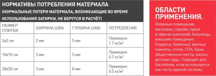 - Экстремальные условия — ее стихия. Бассейны, химлаборатории, фартуки на кухне, пищевые производства — везде, где обычная затирка сдалась бы под натиском агрессивной среды.