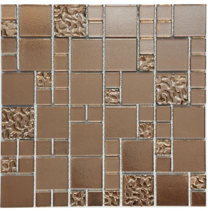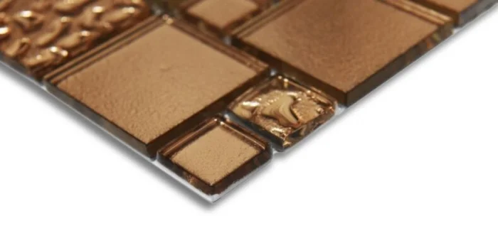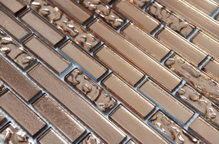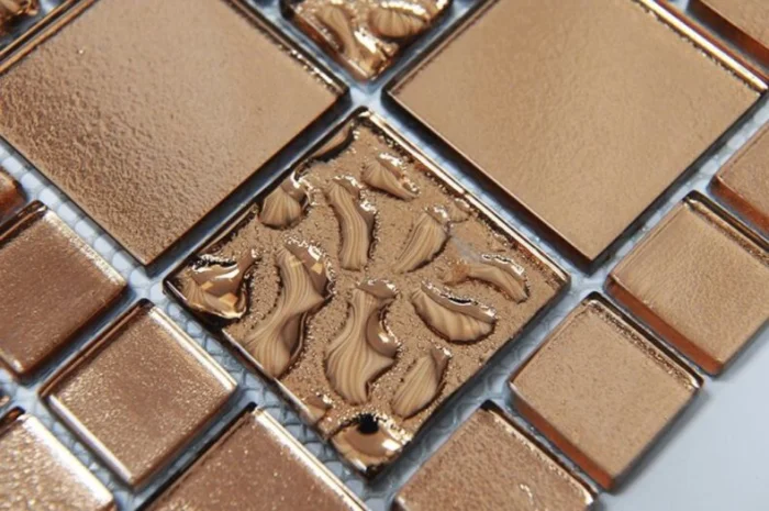 Современное стекло для мозаики — прочное, закаленное, часто с декоративными вкраплениями. Оно проходит обжиг, поэтому не так хрупко, как кажется.