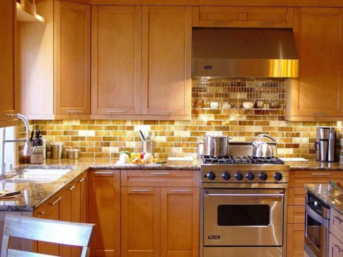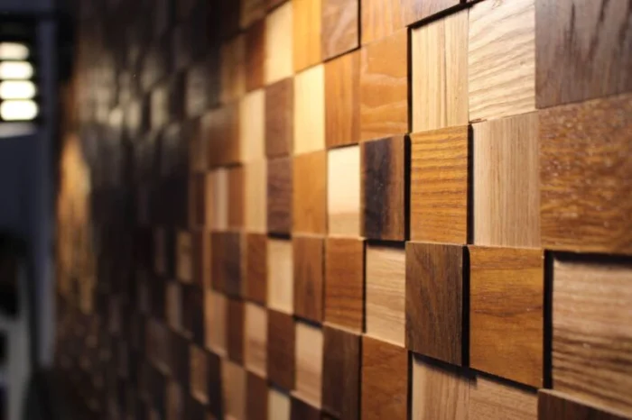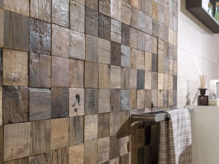 Относительно новое веяние. Маленькие плитки из дуба, ясеня, вишни создают невероятно уютную, живую текстуру. Идеально для стилей кантри, эко или скандинавского. Но давайте будем честны: возле плиты и раковины — это не самый практичный выбор. Дерево боится постоянной влажности, жира и огня. Такой фартук — это красивая, но требующая заботы деталь, а не рабочая лошадка.