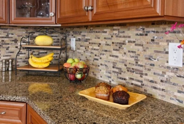 Сланец, гранит, мрамор, аметист... Натуральный камень дарит неповторимый рисунок и солидность. Каждая матрица уникальна. Поверхность может быть шершавой, колотой или отполированной до зеркала. Такой фартук — это инвестиция в атмосферу основательности и роскоши. Кстати, простейшую каменную мозаику можно создать своими руками из речной гальки.