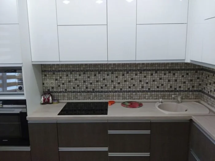 Маленькая, но важная деталь: стык между фартуком и столешницей лучше защитить силиконовым герметиком. Он не даст влаге и грязи просочиться в щель и убережет мебель.