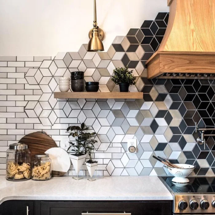 Форма — еще один простор для фантазии. Классические квадраты и «кирпичики» — лишь основа. Мир мозаики полон ромбов, шестиугольников и других геометрических загадок, способных преобразить самую обычную кухню.