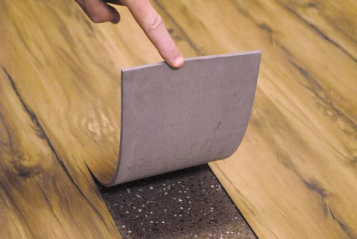 Если при укладке клеевой замковой плитки вы ошиблись, положение можно аккуратно поправить, разъединив панели. Но помните: чем больше времени прошло и чем сильнее было нажатие, тем труднее это сделать.
