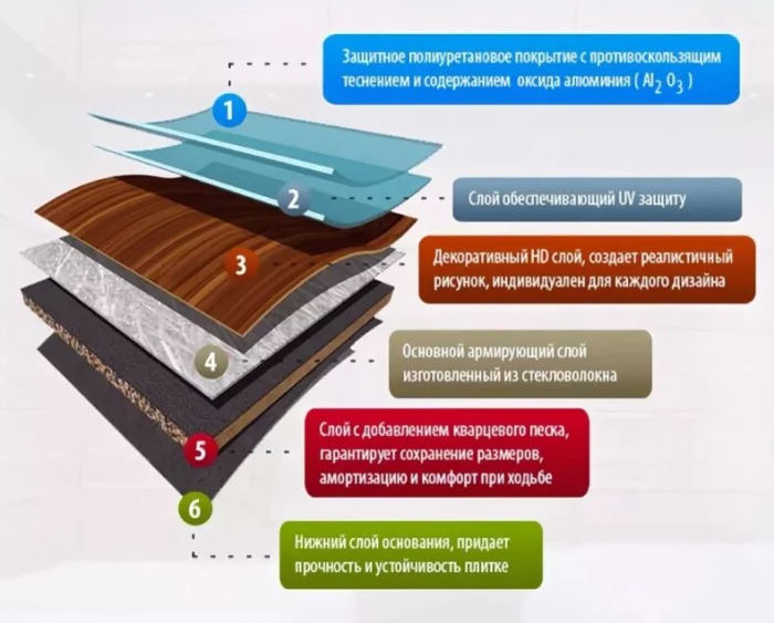 Знакомьтесь: кварцвиниловая плитка. Это не просто ещё один вид ПВХ-покрытия, это его продвинутая версия. Секрет — в составе. Представьте: до 80% здесь занимает измельчённый кварцевый песок, а на долю собственно поливинилхлорида и добавок приходится лишь около 20%. По сути, это камень, облачённый в пластик.