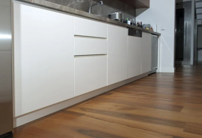 - Абсолютная влагостойкость. Материал не впитывает и не пропускает воду. Идеален для ванных, кухонь, прихожих.