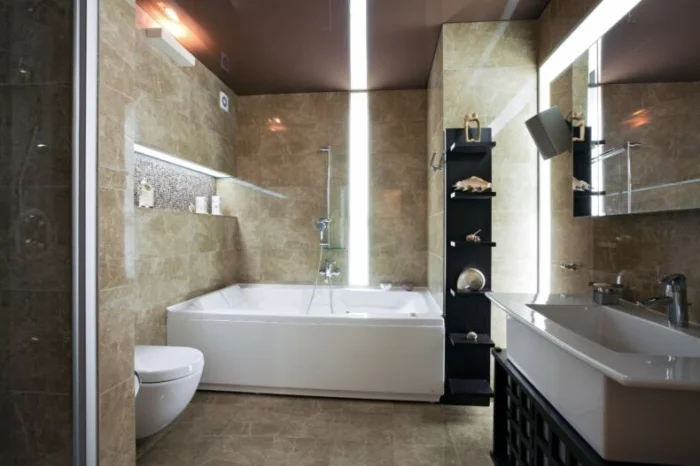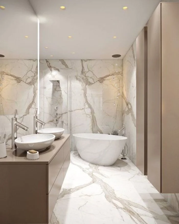 Фото-галерея: плитка под мрамор в интерьере ванной комнаты