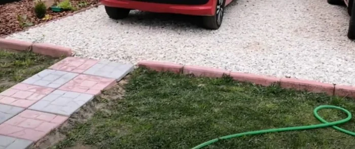 - Бордюр (поребрик). Пластиковый, бетонный, каменный. Он задаёт границы, не даёт дорожке «расползтись» и завершает композицию.