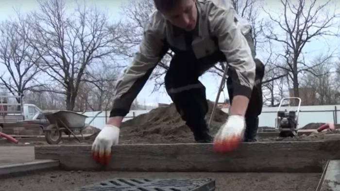 - Бетонное. Монолитная армированная стяжка. Применяется для мест с экстремальными нагрузками (парковки грузовиков), на пучинистых грунтах или при укладке на старое бетонное покрытие. Самый трудоёмкий и дорогой вариант.