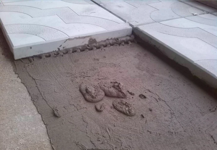 Совет: прежде чем начинать, выложите несколько рядов плитки «на сухую», без раствора. Это поможет наглядно оценить рисунок, подогнать ширину дорожки и понять, сколько и где нужно резать.
