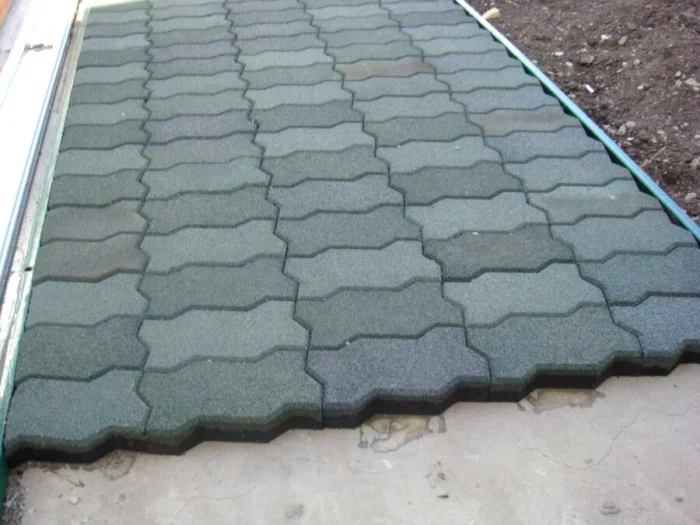 - Полимерпесчаная плитка. Лёгкая, очень прочная, не боится воды и мороза. Делается из песка и переработанного пластика. Интересный и практичный экологичный вариант.