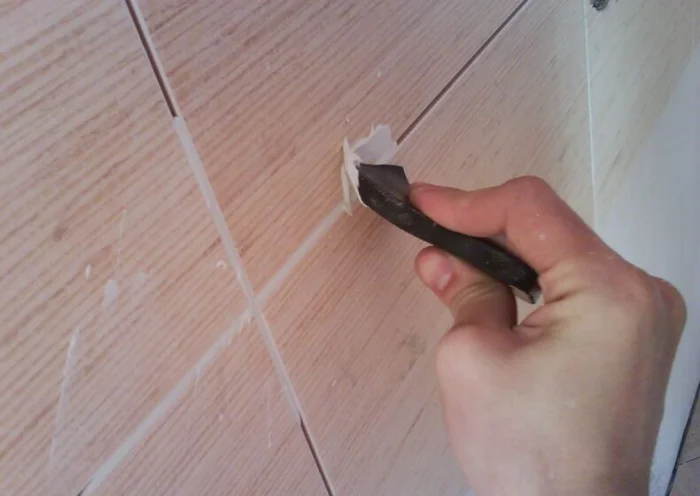 Как удалить старую затирку: Аккуратно подденьте и уберите её острым предметом (скребком, ножом). Остатки выметите кистью или пропылесосьте.