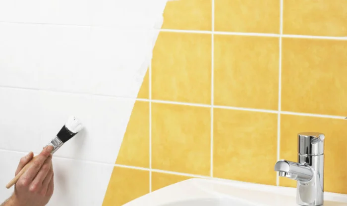 Если надоел не узор, а именно цвет плитки, её можно перекрасить полностью. Используйте валик для больших поверхностей и кисть для швов. Но будьте осторожны: в зонах прямого попадания воды (около душа, раковины) краска может со временем отслоиться.