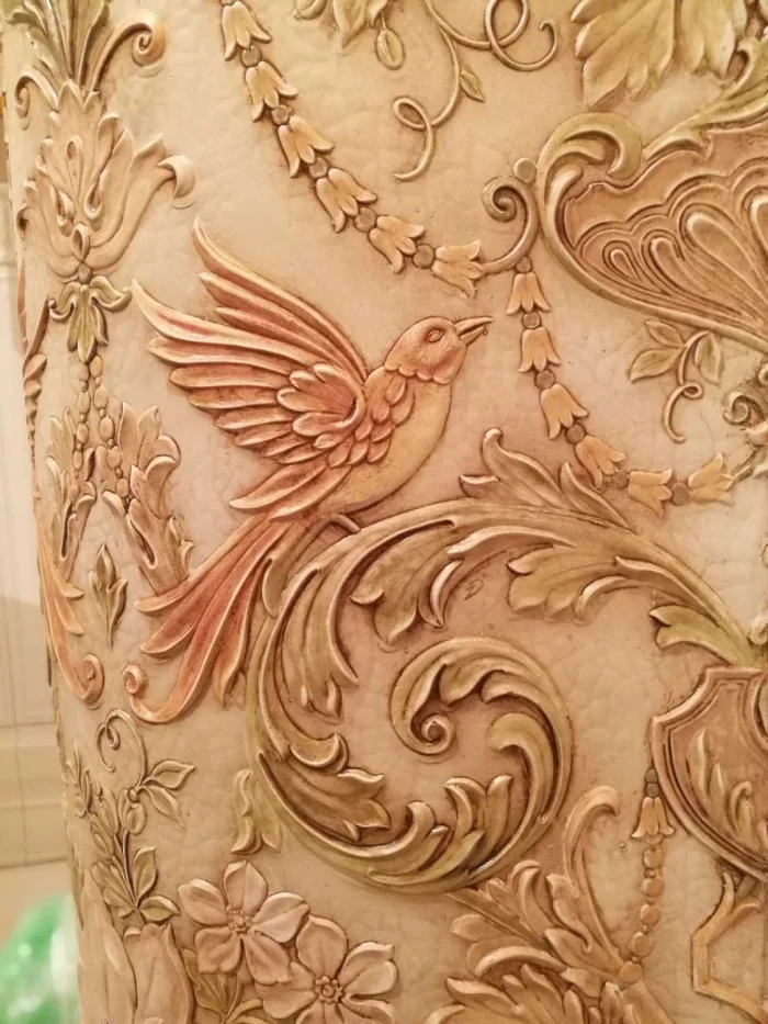 Самое удивительное в линкрусте — он с возрастом становится только прочнее, как хорошее вино. Продается в рулонах, но это далеко не простые обои. Материал невероятно пластичный, позволяет создавать потрясающий глубокий рельеф.