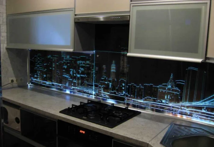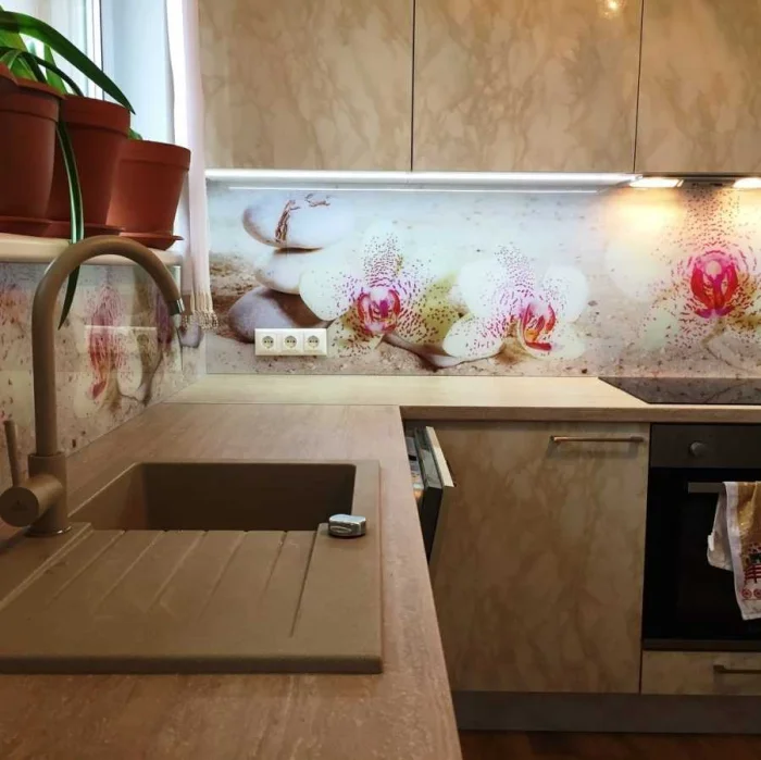 Классика для кухонного фартука. Стеклянная панель с 3D-эффектом способна преобразить самую обычную кухню, добавив ей стиля и глубины.