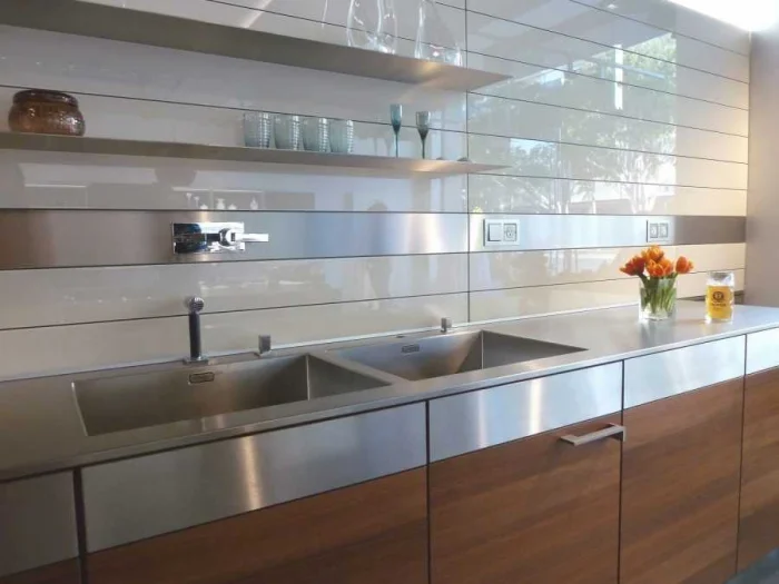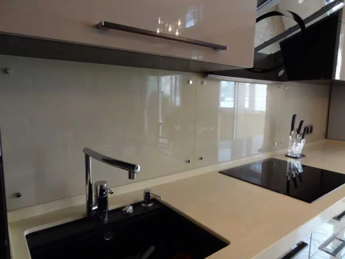 Закаленное стекло не боится ни брызг масла, ни высокой температуры от плиты. Мыть его — одно удовольствие, подойдет любое средство. Главное — без абразивов, чтобы не поцарапать блестящую поверхность.