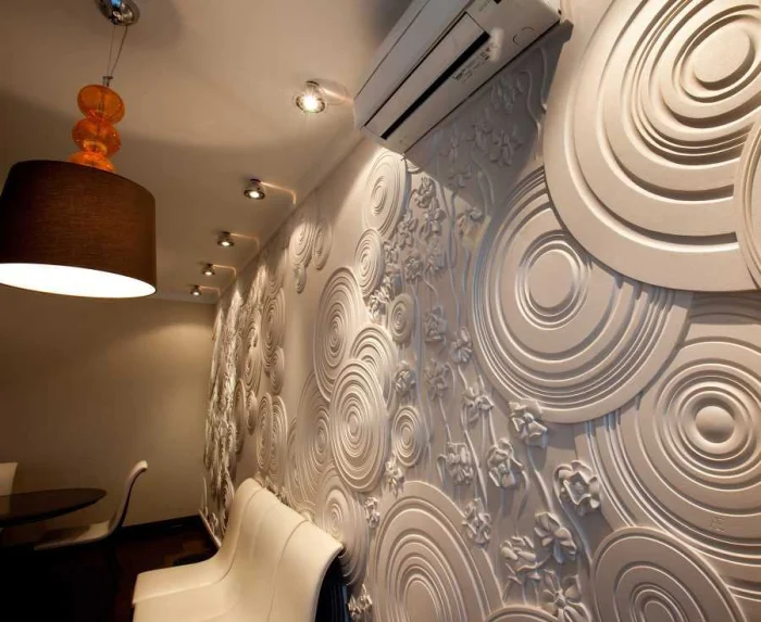 Если хотите по-настоящему современный и эффектный интерьер — присмотритесь к 3D-панелям. Они делаются из разных материалов: