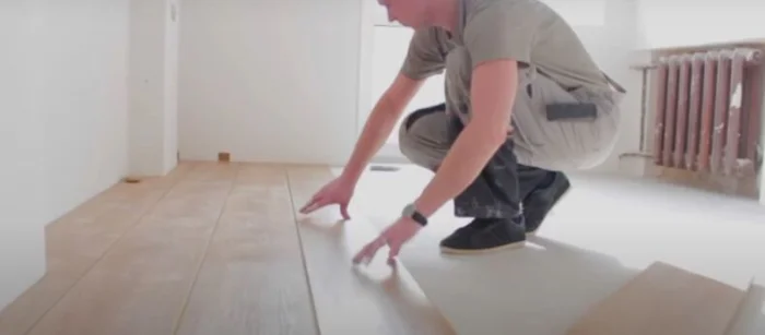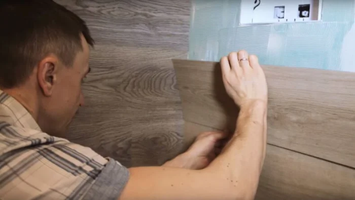 Есть модели с уже нанесённой клеевой основой — достаточно снять защитную бумагу. А есть замковые системы, которые укладываются как ламинат. Мы говорим о классическом клеевом способе.