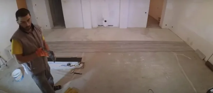 Специалисты советуют начинать укладку от входа или от самого открытого, видного участка. Каждую приклеенную плитку простукивайте киянкой и прокатывайте валиком от центра к краям — для максимального сцепления.