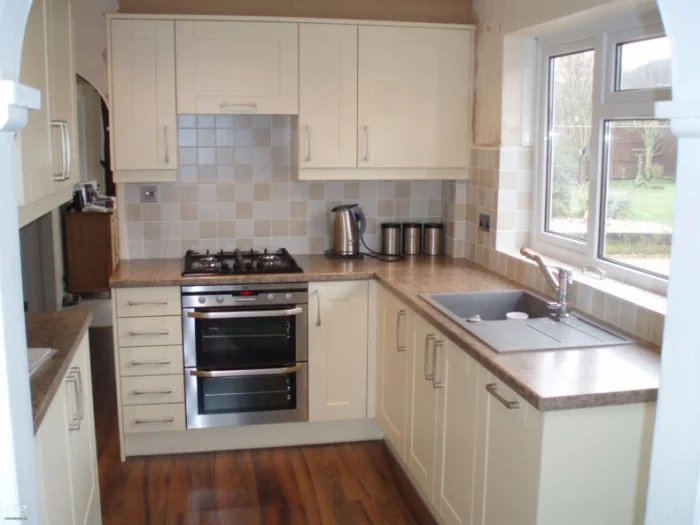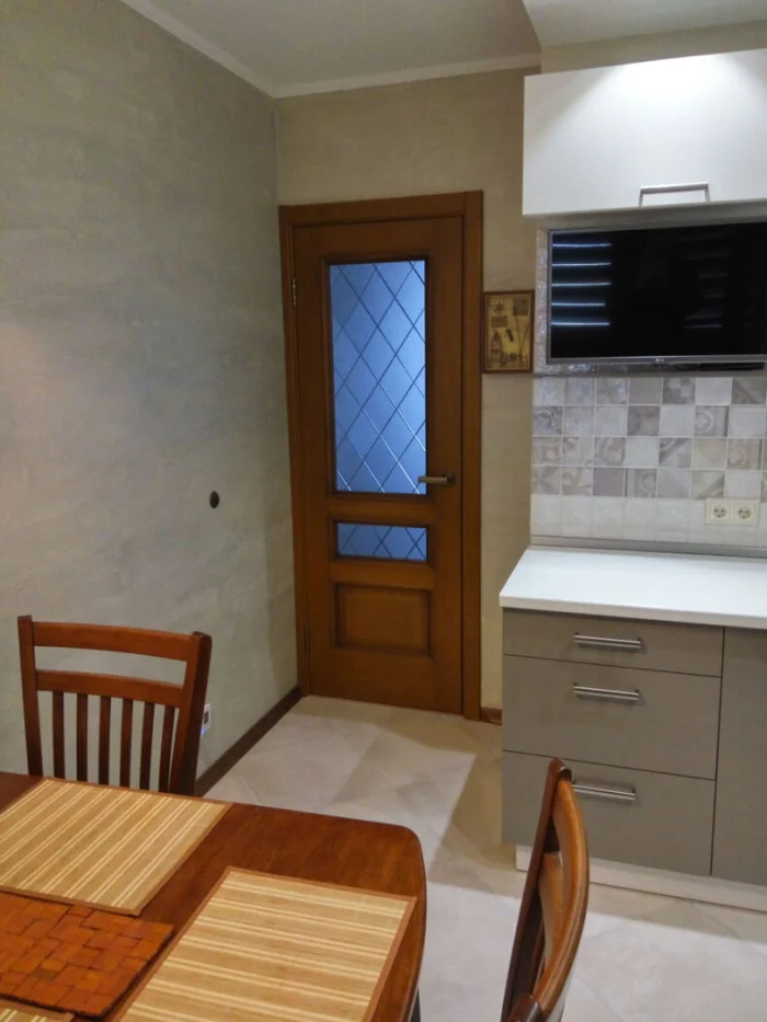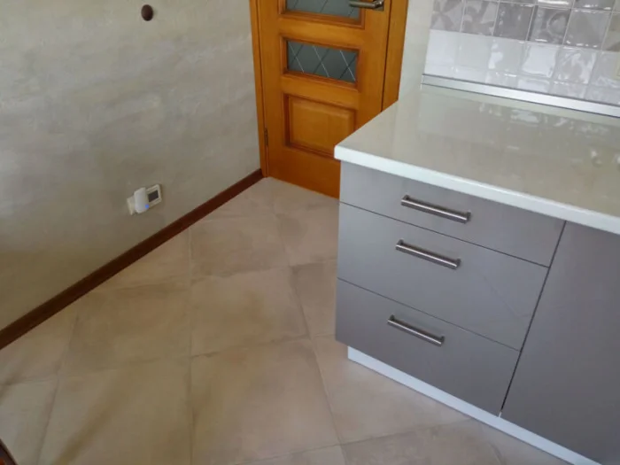Важно! Замените всю электропроводку до отделки стен. Потом будет поздно. После черновых работ — выравнивание стен, грунтовка. Возле плиты не используйте обычную шпаклёвку — от нагрева может отвалиться. Лучше плитка или стеклянный фартук.