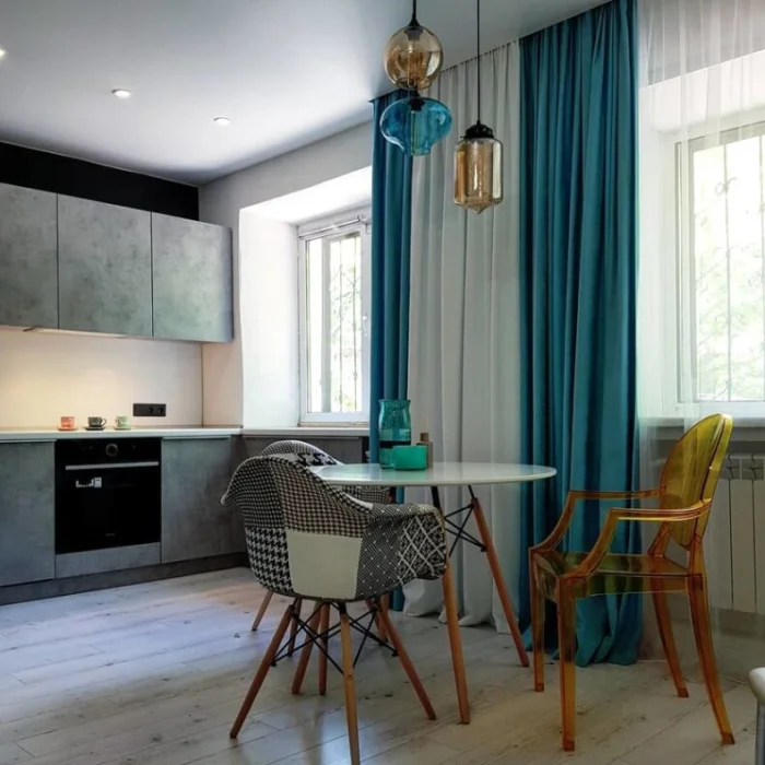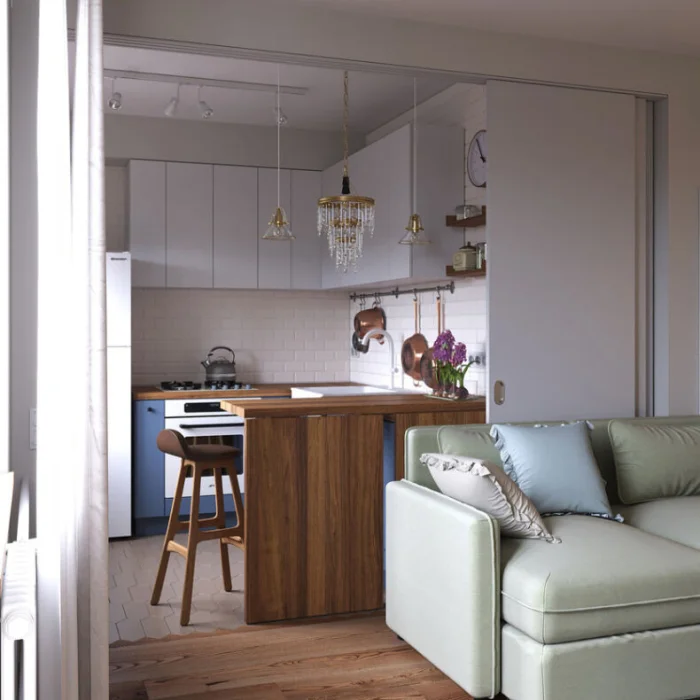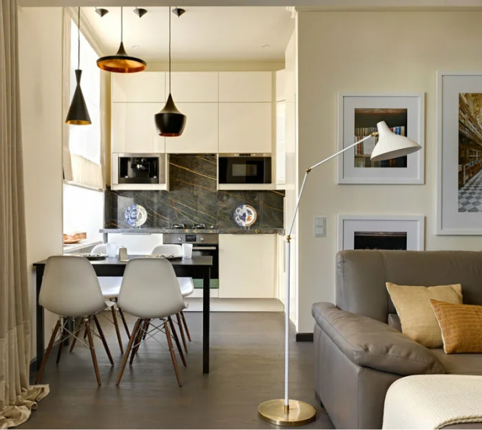 - Запахи и шум из кухни будут проникать в жилую зону.