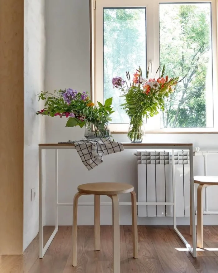- Подоконник = столешница. Продлите рабочую зону, объединив подоконник со столешницей.