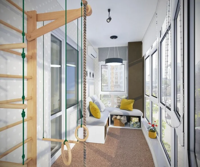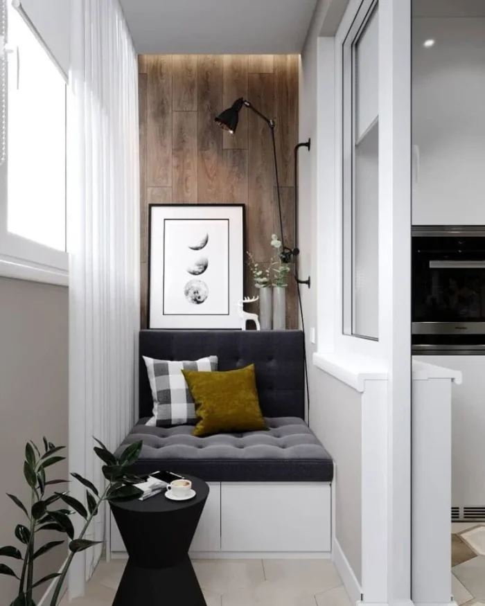 Часто балкон — это единственное место для сезонного хранения. Почему бы не сделать это хранение удобным? Встроенный шкаф или несколько аккуратных тумб решат проблему с захламленностью.