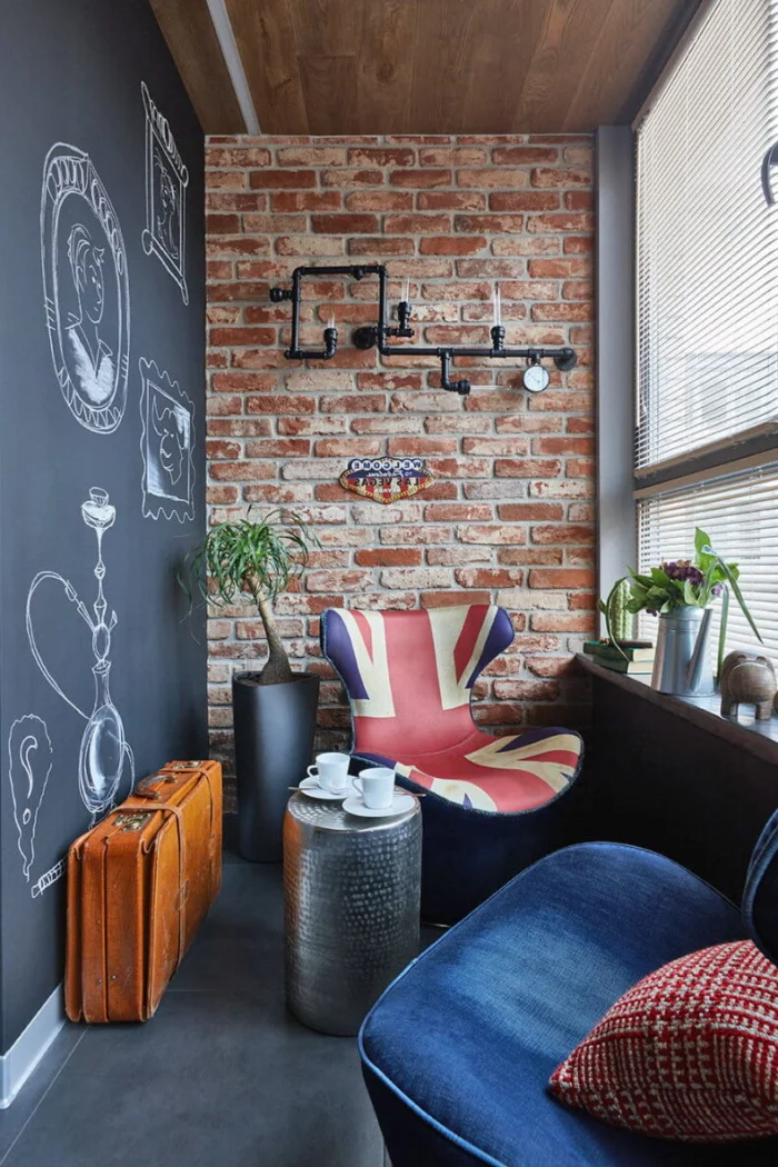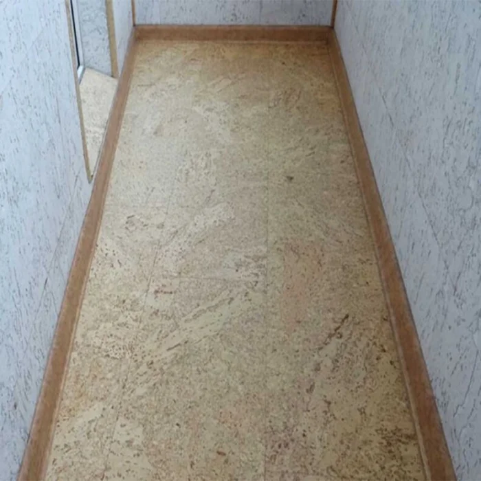 Пробковую стену так и хочется потрогать. Это отличный выбор для балкона-кабинета или зоны отдыха, где важна тишина и особая атмосфера.