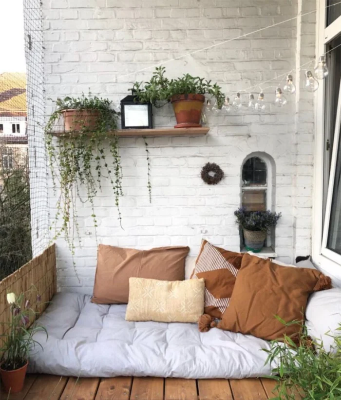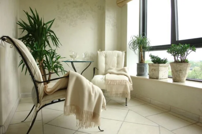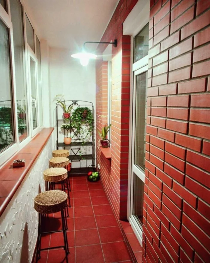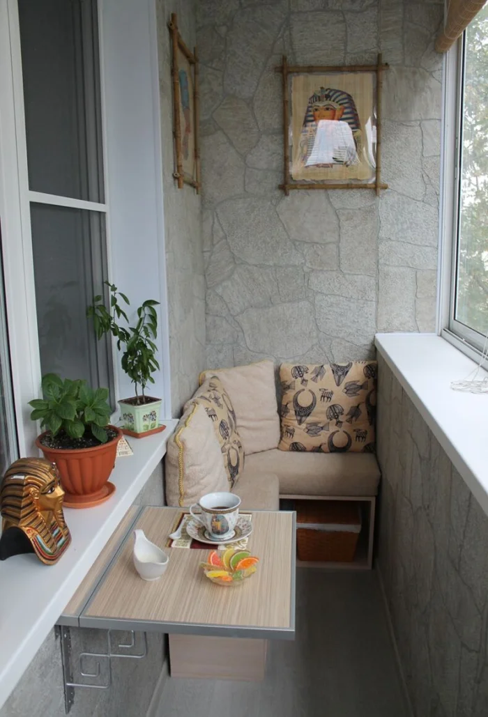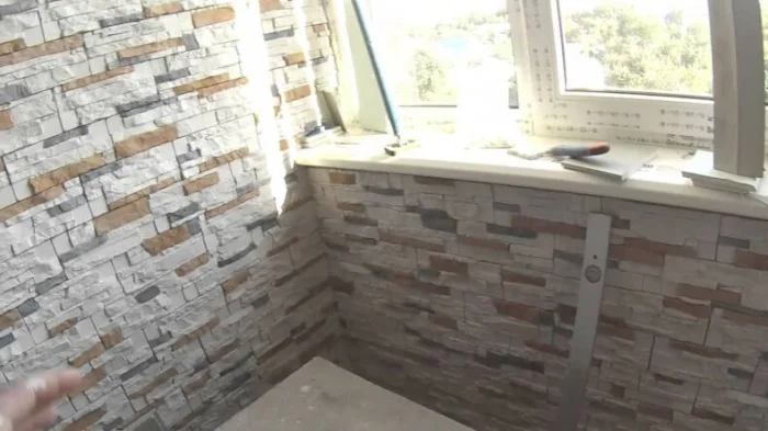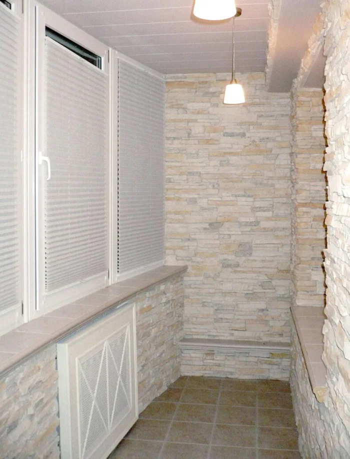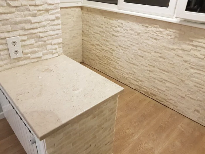 Вариантов фактур и цветов — сотни: от грубого дикого камня до гладкого мрамора. Для маленького балкона лучше выбрать светлые оттенки — они не будут «давить».