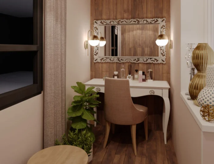 Главное — выбрать мебель из материалов, устойчивых к перепадам температуры и влажности (ЛДСП с влагостойкой пропиткой, пластик). И обязательно продумать планировку до начала отделочных работ! Где будет стоять шкаф, куда выведется розетка для светильника?