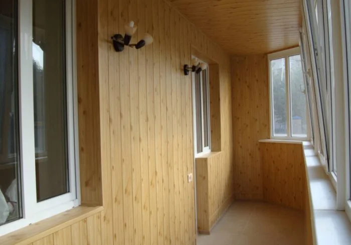 Панели МДФ — золотая середина между деревом и пластиком. Выглядят солидно, стоят недорого, хорошо держат тепло и тишину. Но они довольно хрупкие: сильный удар может оставить вмятину. И ещё важный момент: если вы планируете проводить на балконе свет, всю проводку нужно спрятать в гофру до монтажа обшивки. Безопасность прежде всего!
