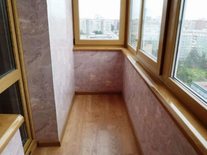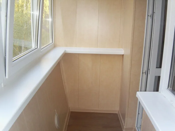 Идеально сочетаются с современным пластиковым остеклением. Гигиеничные, долговечные, не боятся ни дождя за окном, ни пара от чашки. Монтировать их — одно удовольствие. Для холодного балкона лучше брать узкие панели (около 25 см) — они менее чувствительны к морозу.