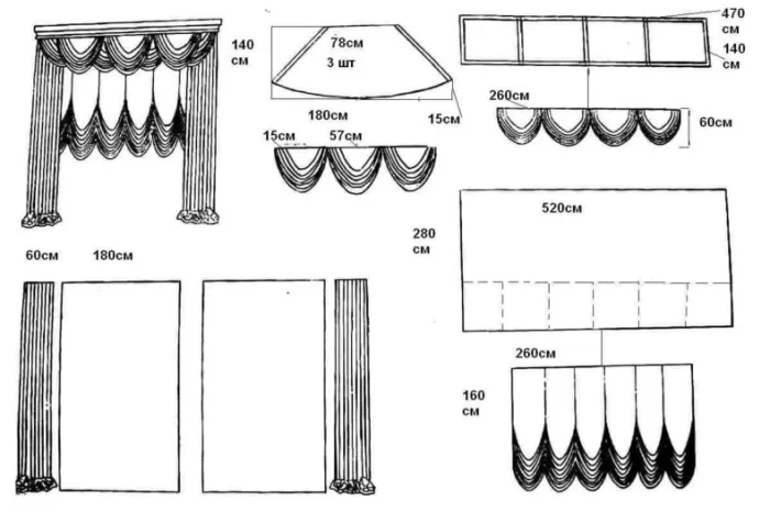 Галерея идей: ламбрекены для зала на фото