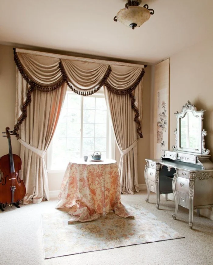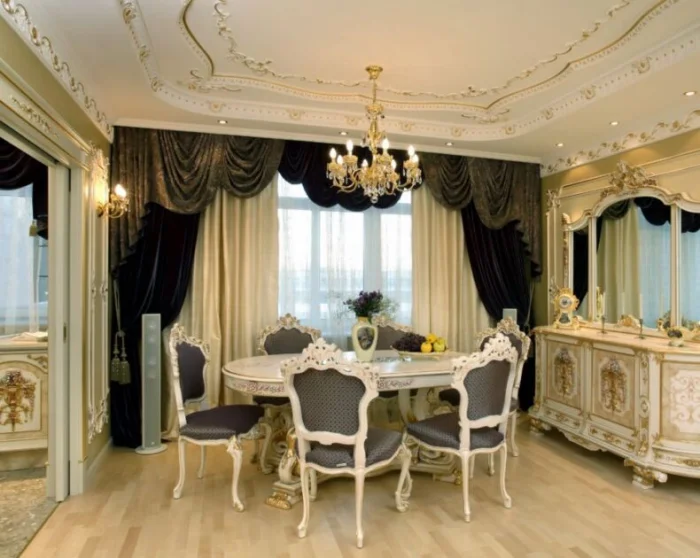 Важно! Выбирая фасон, помните о чувстве меры. Перебор с оборками и золотом мгновенно превратит вашу гостиную в декорацию к пьесе о жизни французской куртизанки или, что ещё печальнее, в зал провинциального кафе. Нам это не нужно, правда?