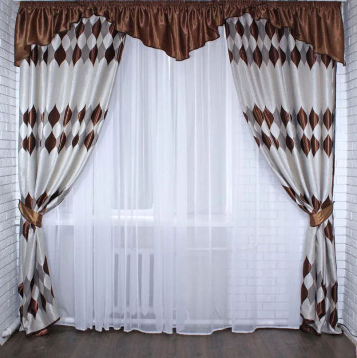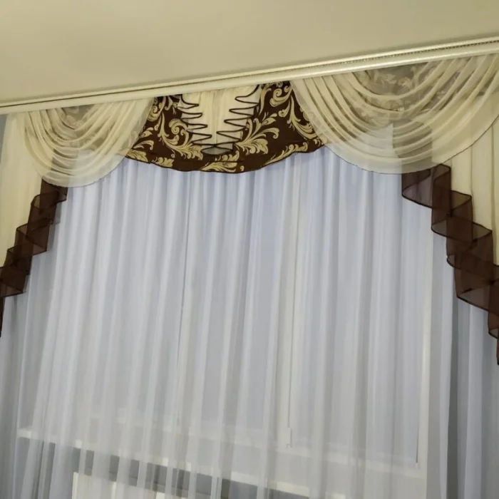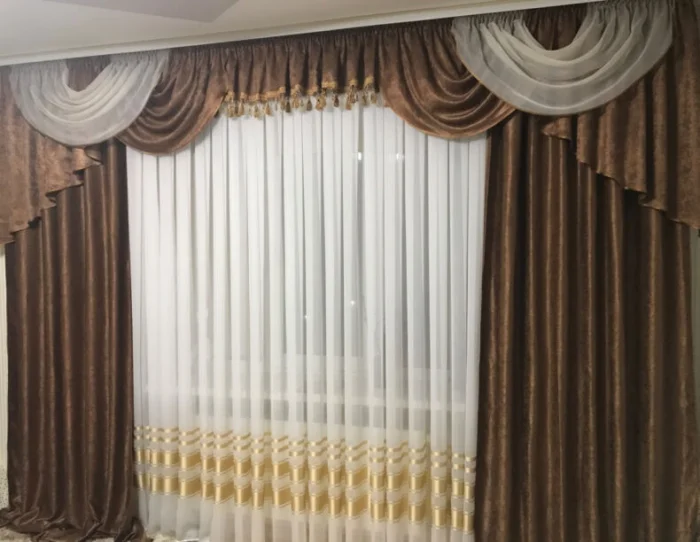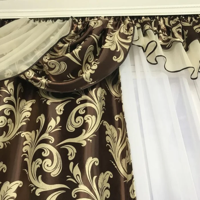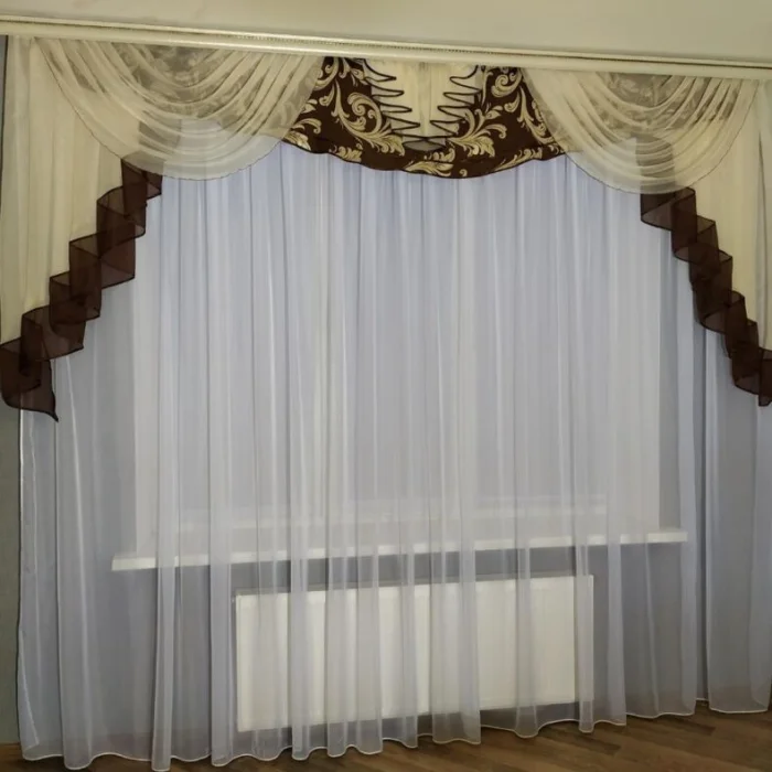 - Ламбрекен – тёмный шоколад, в цвет окантовки тюля.