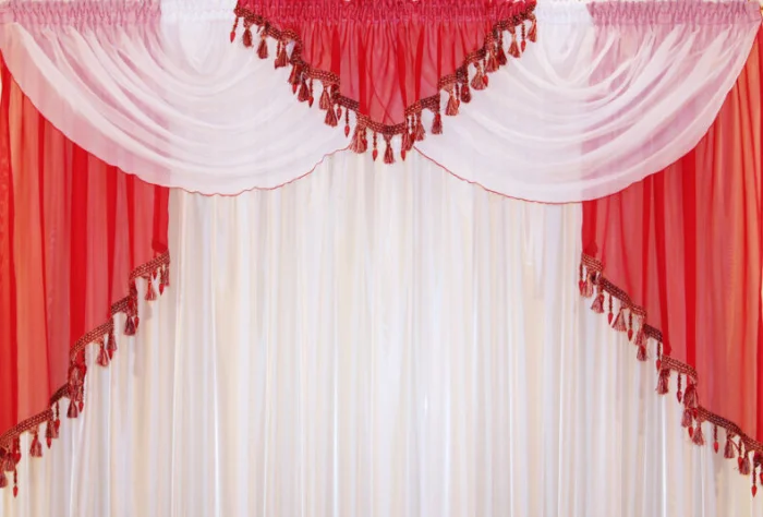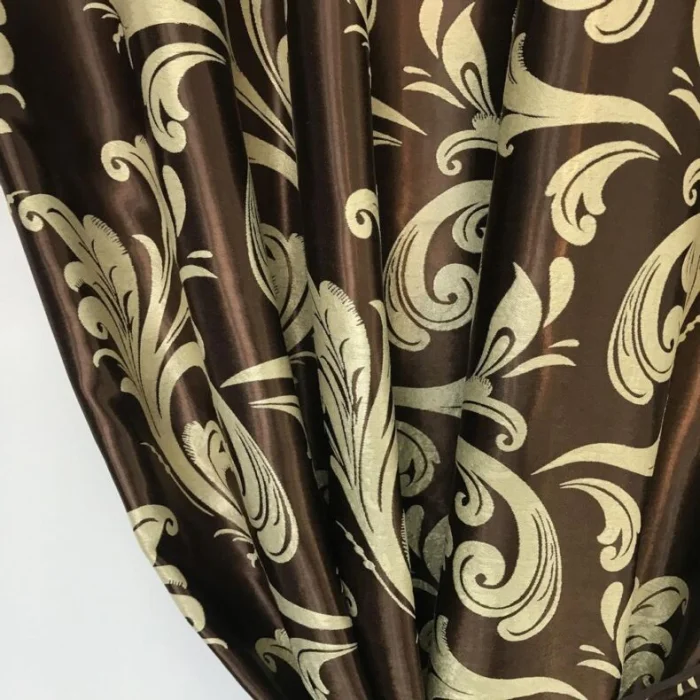 Дешёвая синтетика с блёстками – это уже вчерашний день. В фаворе двусторонний жаккард, где узор создаётся за счёт разного плетения нитей. Он красив, но учтите: для мягких фестонов и свагов он не подходит – слишком жёсткий.